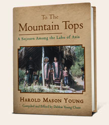 TO THE MOUNTAIN TOPS was written by Harold Mason Young, Gordon Young's father. In this book, the author uses his quaint writing style and keen observational skills to share with the world information on the Lahu Na people living in northeastern Burma and the bordering mountains of Yunnan, China.
